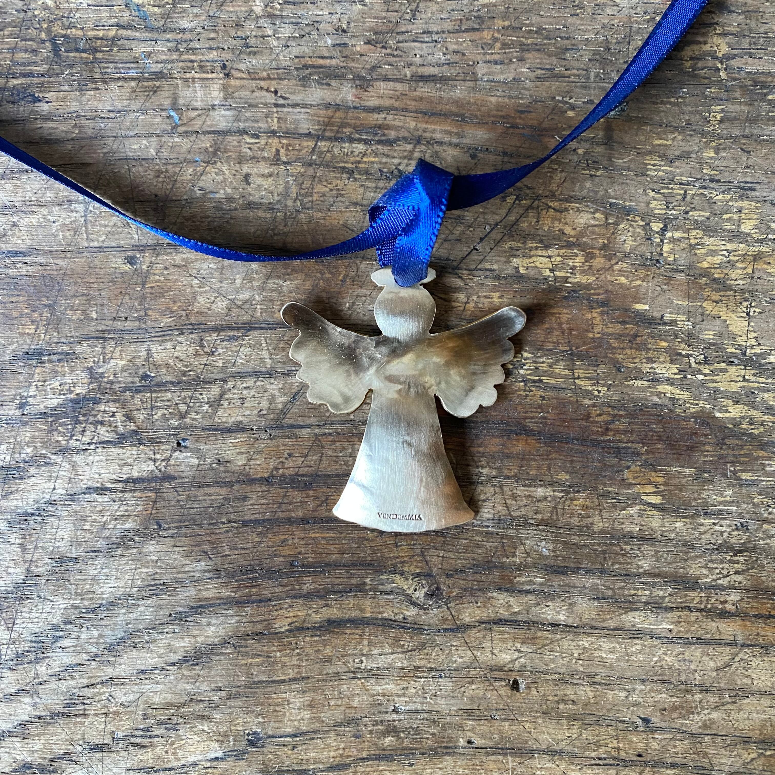 天使をモチーフにした優雅なデザインが特徴のオーナメントです。真鍮の地金で丁寧に作られており、温かみのある趣を持っています。飾る場所を選ばず、心を和ませる存在感を放つアイテムです。